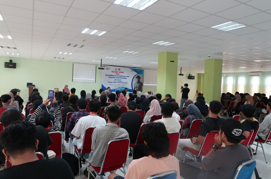 Sesi kuliah umum dipandu oleh Dr. Isnawati Mohammad, S.Pd., M.Pd. sebagai moderator, yang mengarahkan jalannya diskusi secara interaktif. Para peserta tampak antusias mengajukan pertanyaan dan berdiskusi langsung dengan narasumber mengenai dinamika dunia seni rupa, proses kuratorial, serta tantangan seniman muda di era globalisasi, dan terutama bagaimana strategi dalam memanfaatkan pengetahuaa dan material lokal menjadi subjek karya yang estetik dan representatif.