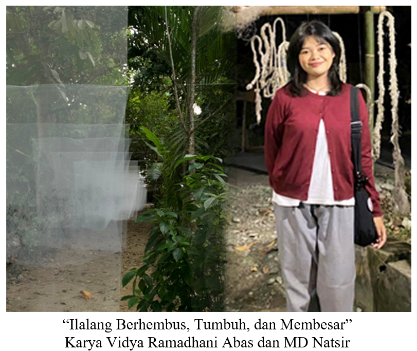 Vidya Ramadhani Abas berkolaborasi dengan perupa MD Natsir, menghasilkan karya instalasi dengan tajuk “Ilalang Berhembus, Tumbuh, dan Membesar”. Ia mengangkat konsep tentang narasi panjang proses penanaman padi hingga menjadi suguhan makan pokok tiap hari. Konsep tersebut diartikuliasikan dalam bentuk puluhan cetak grafis pada kain tipis tembus pandang dan dipajang teratur memenuhi gang.